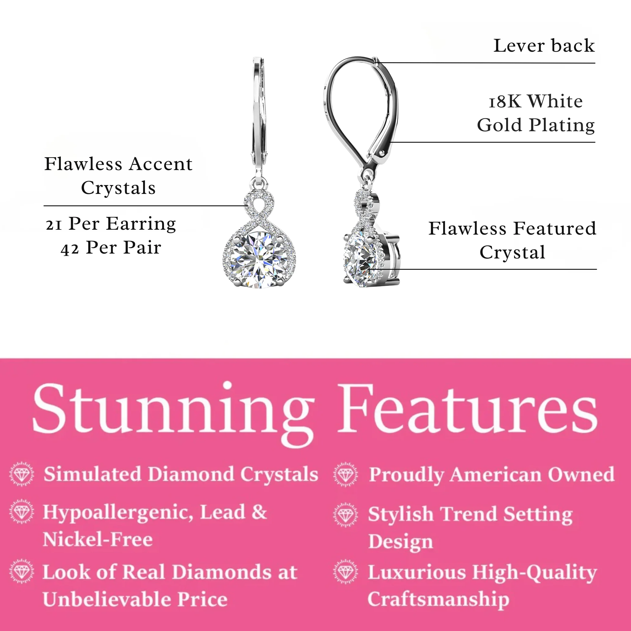 Alessandra 18k White Gold Plated Infinity Drop Earrings with Simulated Diamond Crystals