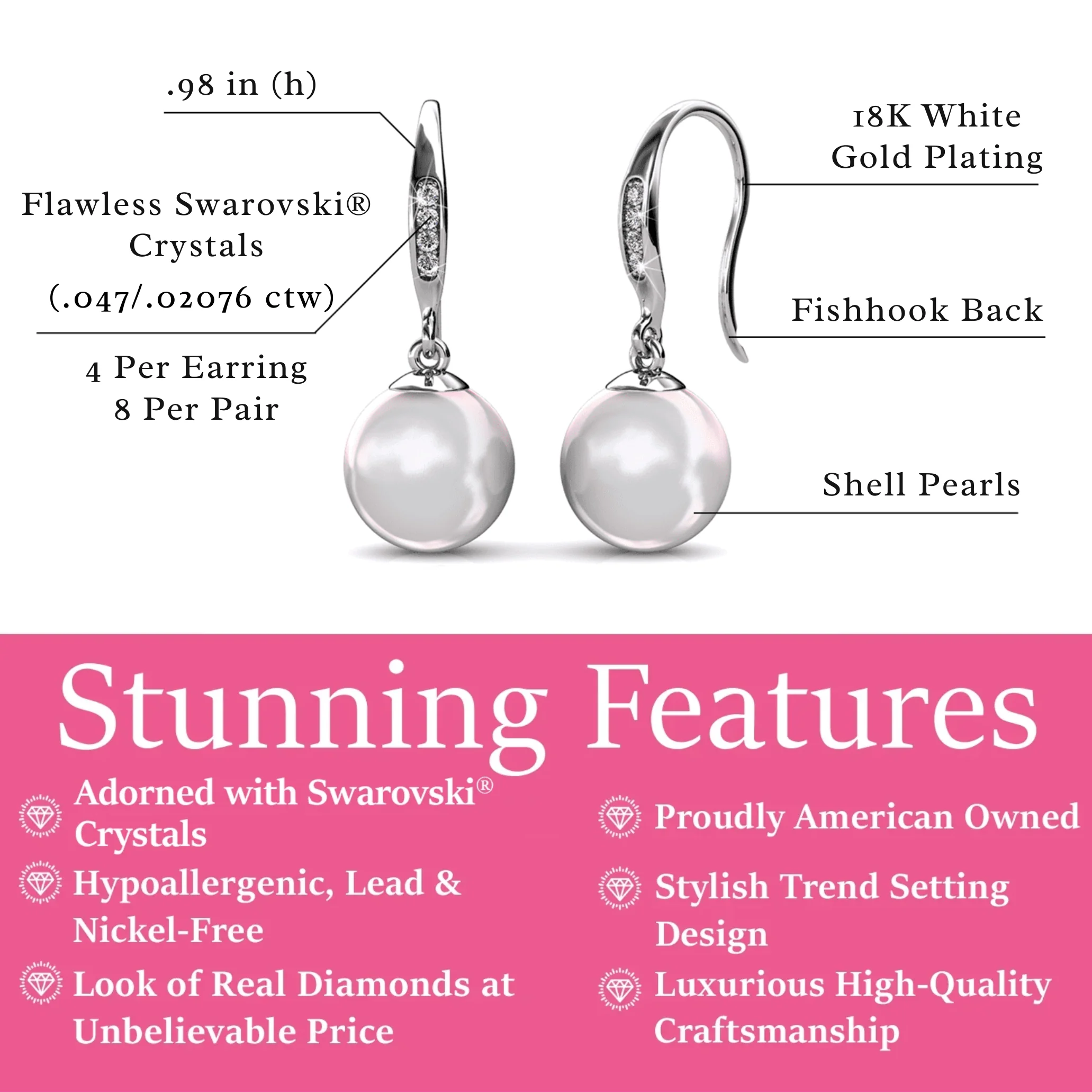 - Stone Count: 2 Featured Pearls | 8 Accent Stones Per Pair