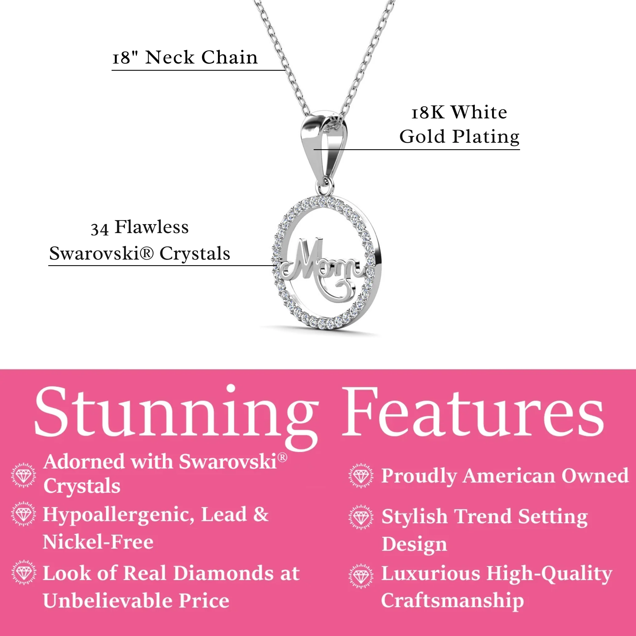 The 18" cable chain with a secure lobster clasp ensures comfort and durability, while the premium Cate & Chloe gift box adds a polished finish, making this necklace a thoughtful gift for the extraordinary mom in your life.