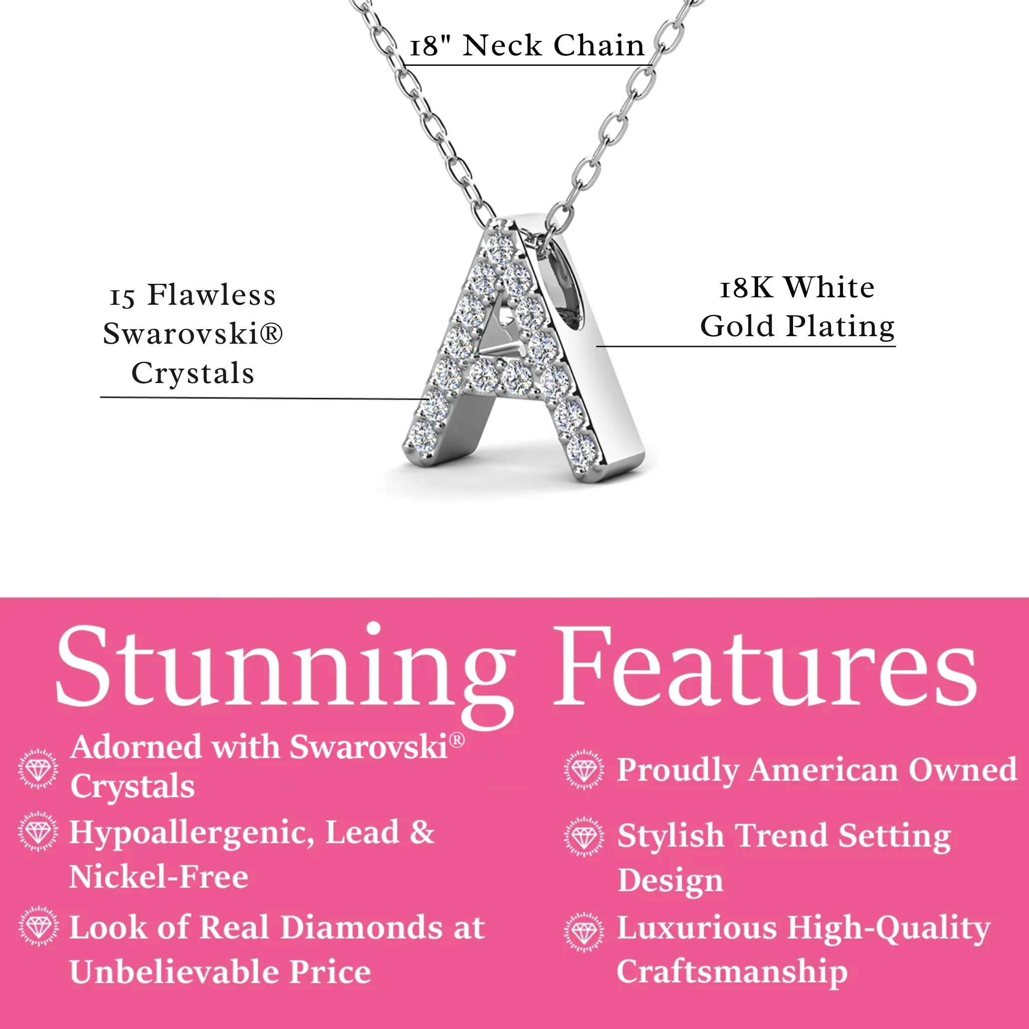 Ethereal Collection 18k White Gold Plated Initial Letter Pendant Necklace with Swarovski Crystals