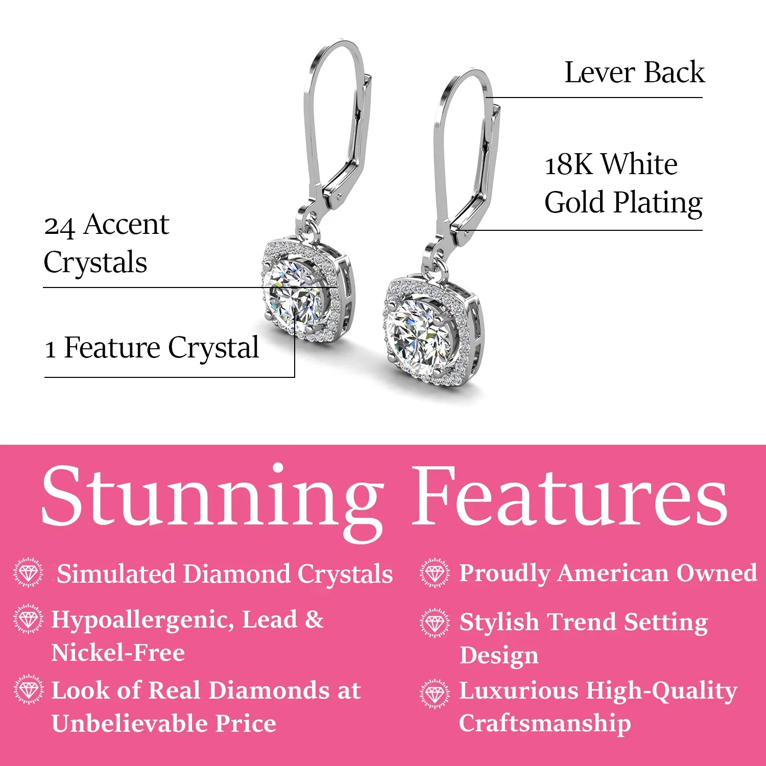 Freya 18k White Gold Plated Halo Drop Earrings with Simulated Diamond Crystals