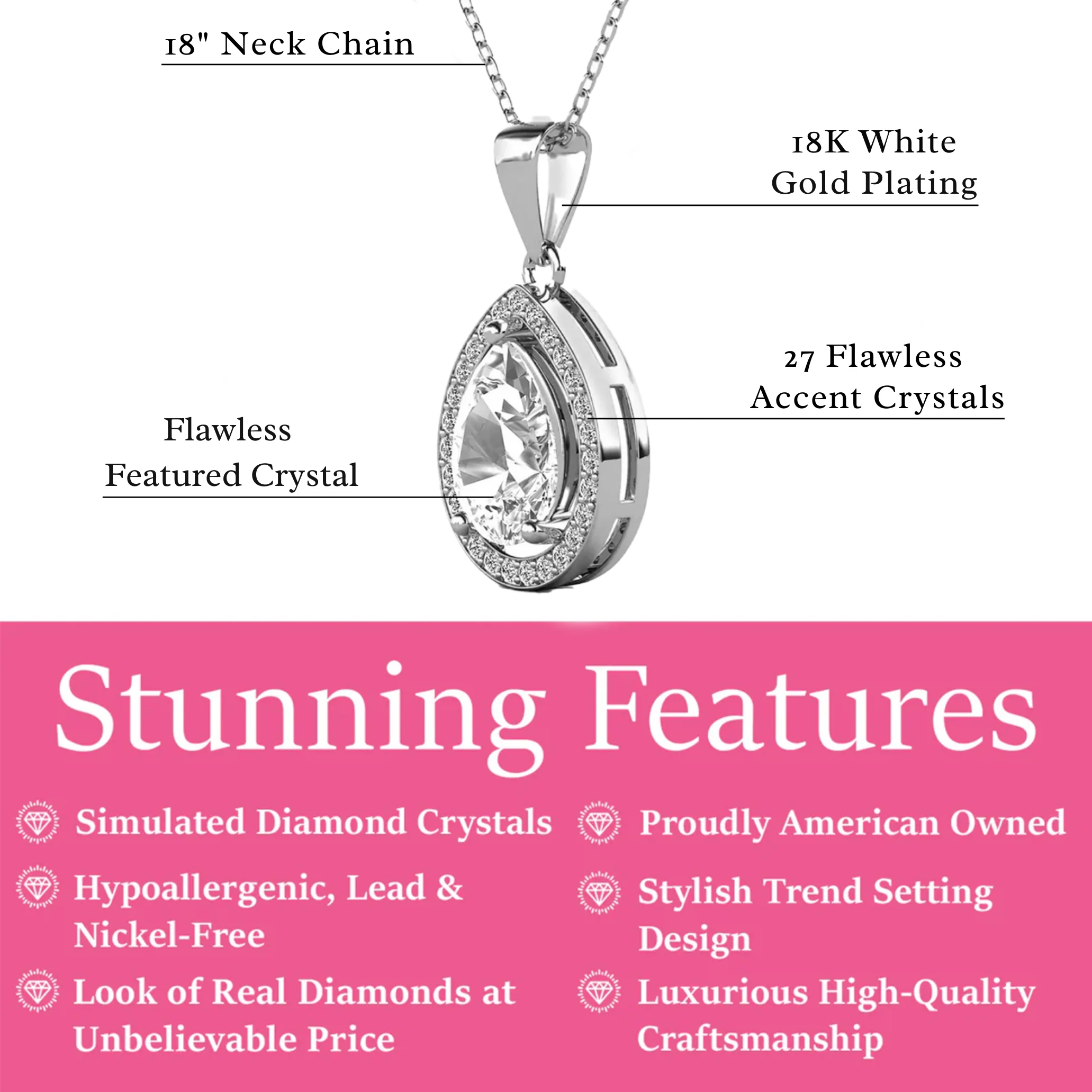 Isabel 18k White Gold Plated Halo Teardrop Necklace with Simulated Diamond Crystal