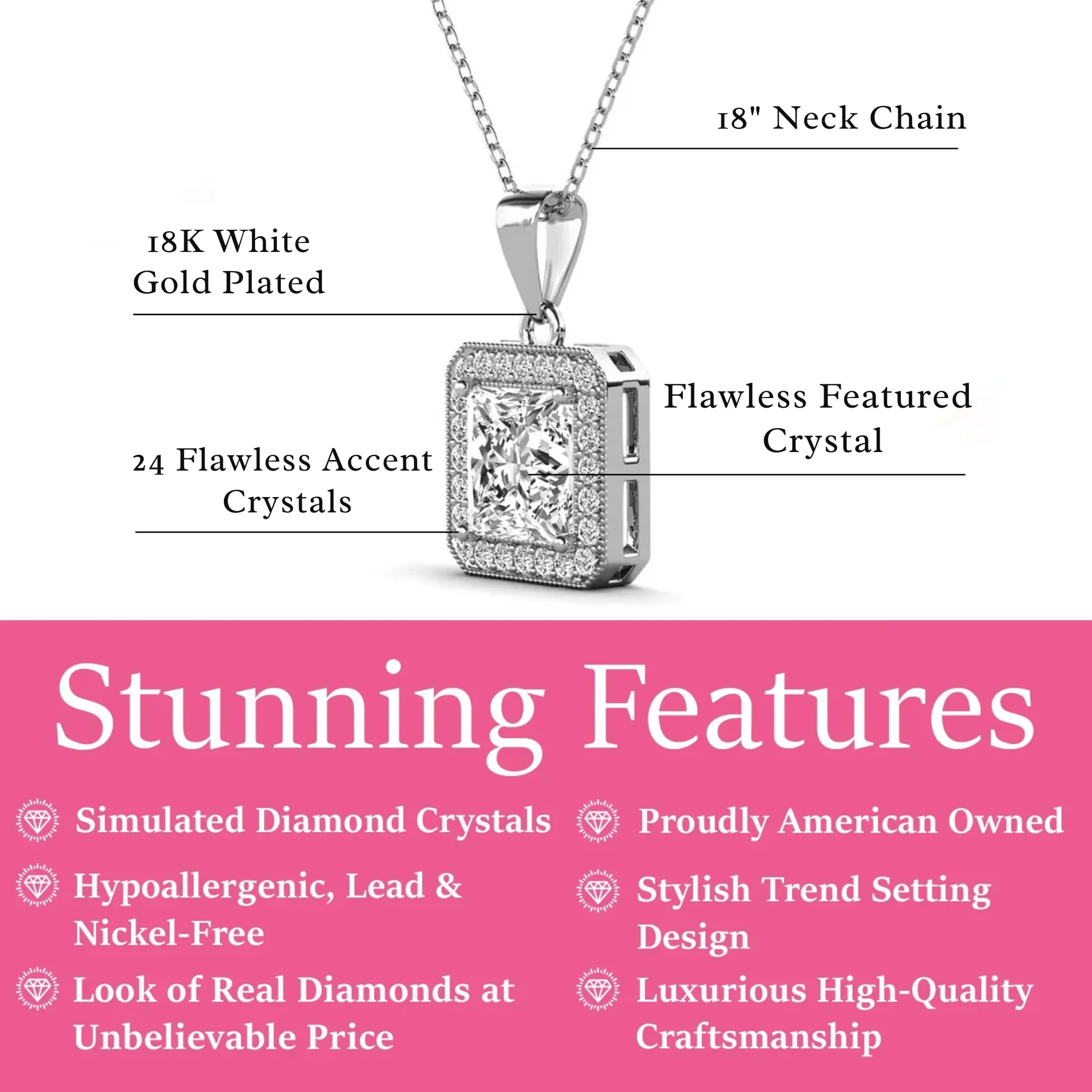 Expertly crafted with 18k white gold plating and enhanced with top-tier AAA+ Simulated Diamond Crystal, this necklace promises a radiant shimmer that complements any outfit. Plus, it comes beautifully presented in an elegant jewelry gift box, making it an excellent option for thoughtful gifting.