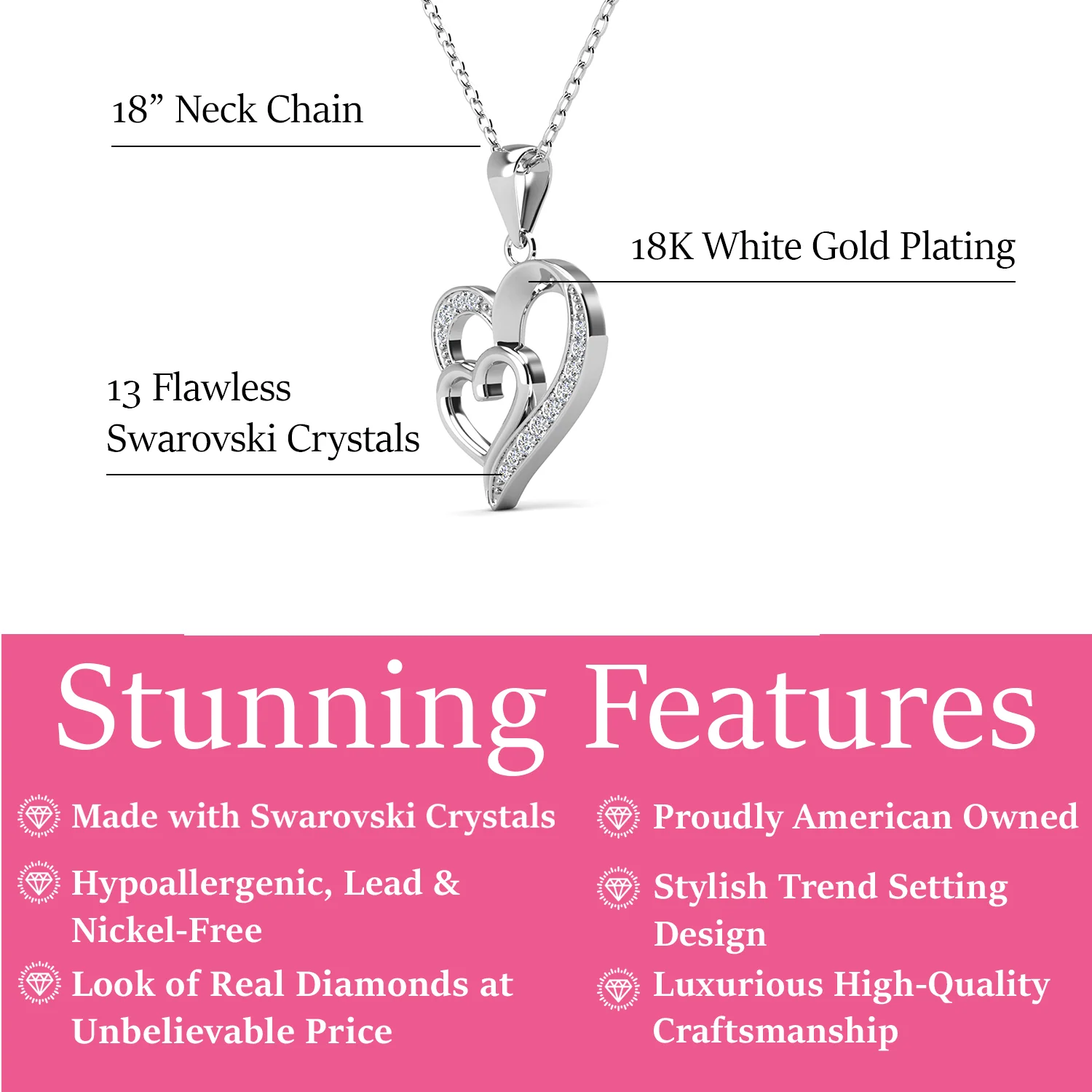 Jennifer 18k White Gold Plated Double Heart Necklace with Swarovski Crystals