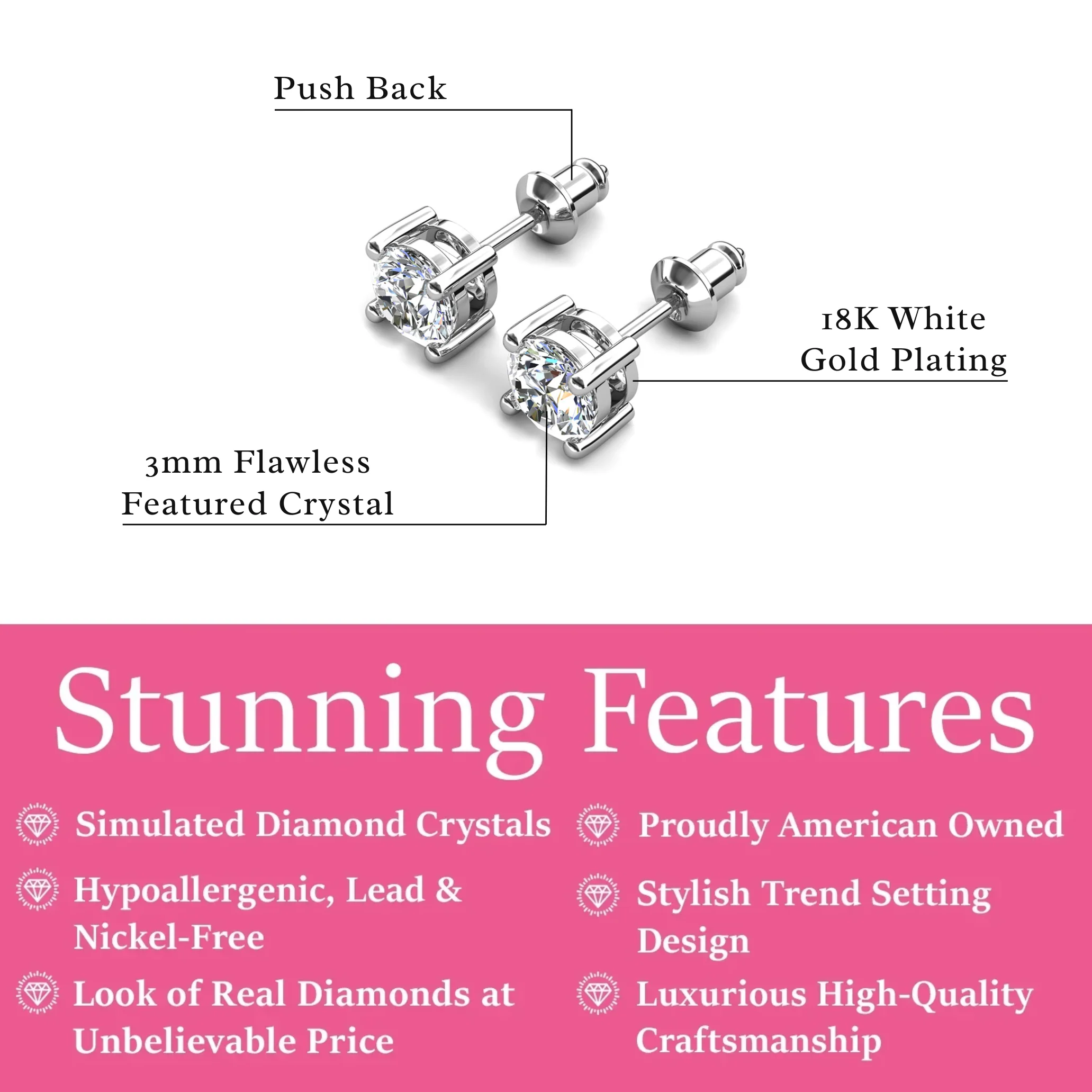 Mia 18k White Gold Plated Sterling Silver Stud Earrings with Simulated Diamond Crystals