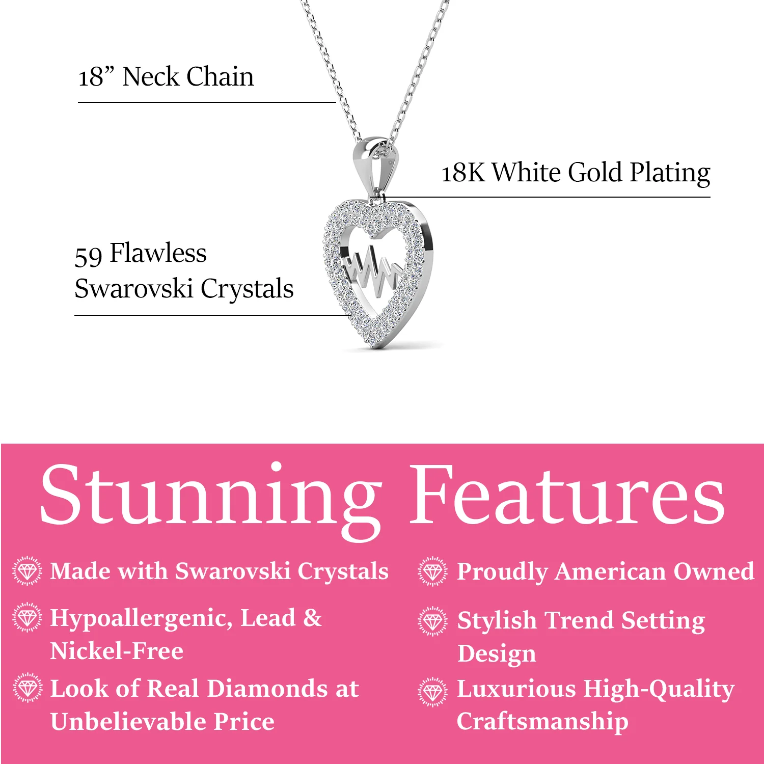 Molly 18k White Gold Plated Heart Necklace with Swarovski Crystals