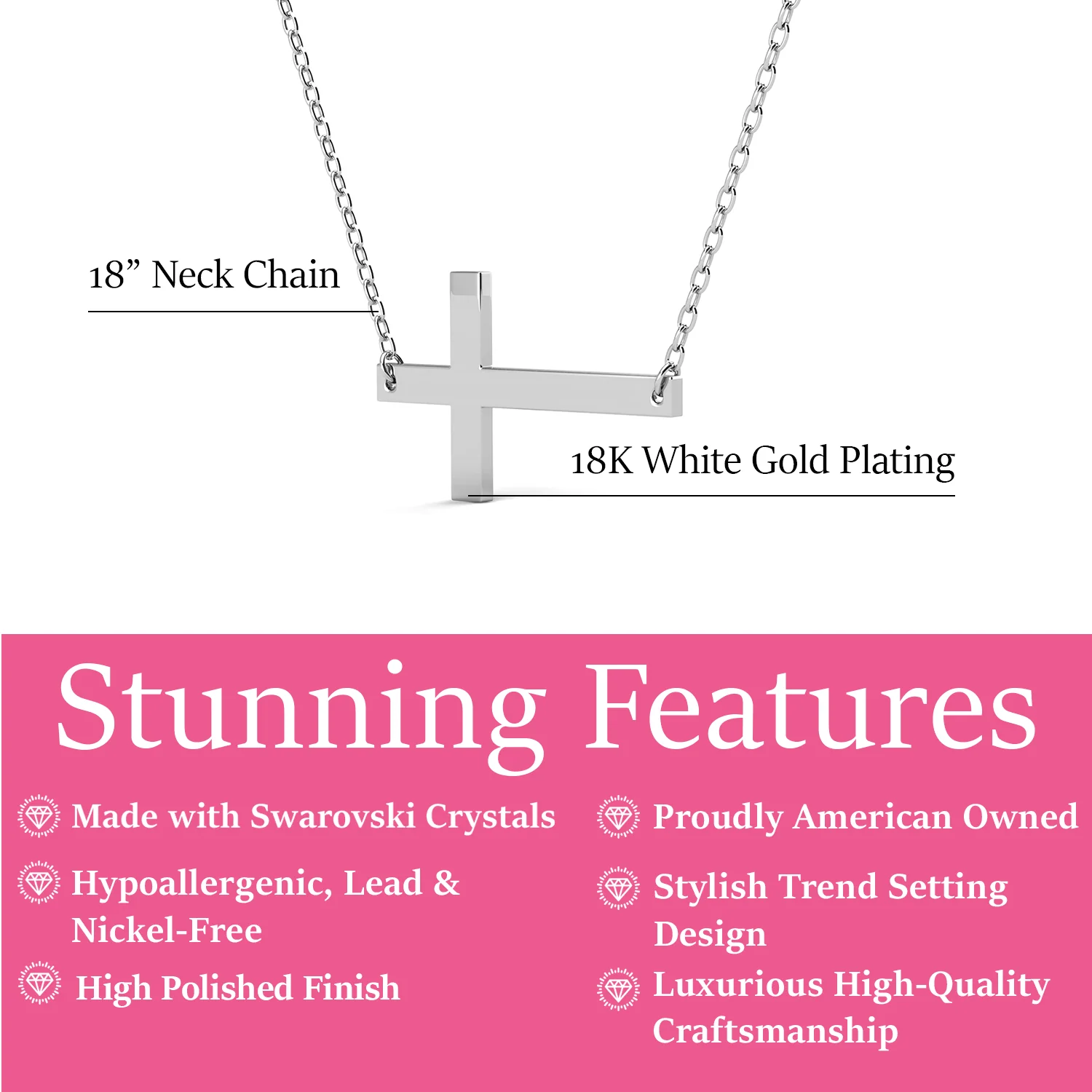 - Chain Length: 18" Cable Chain