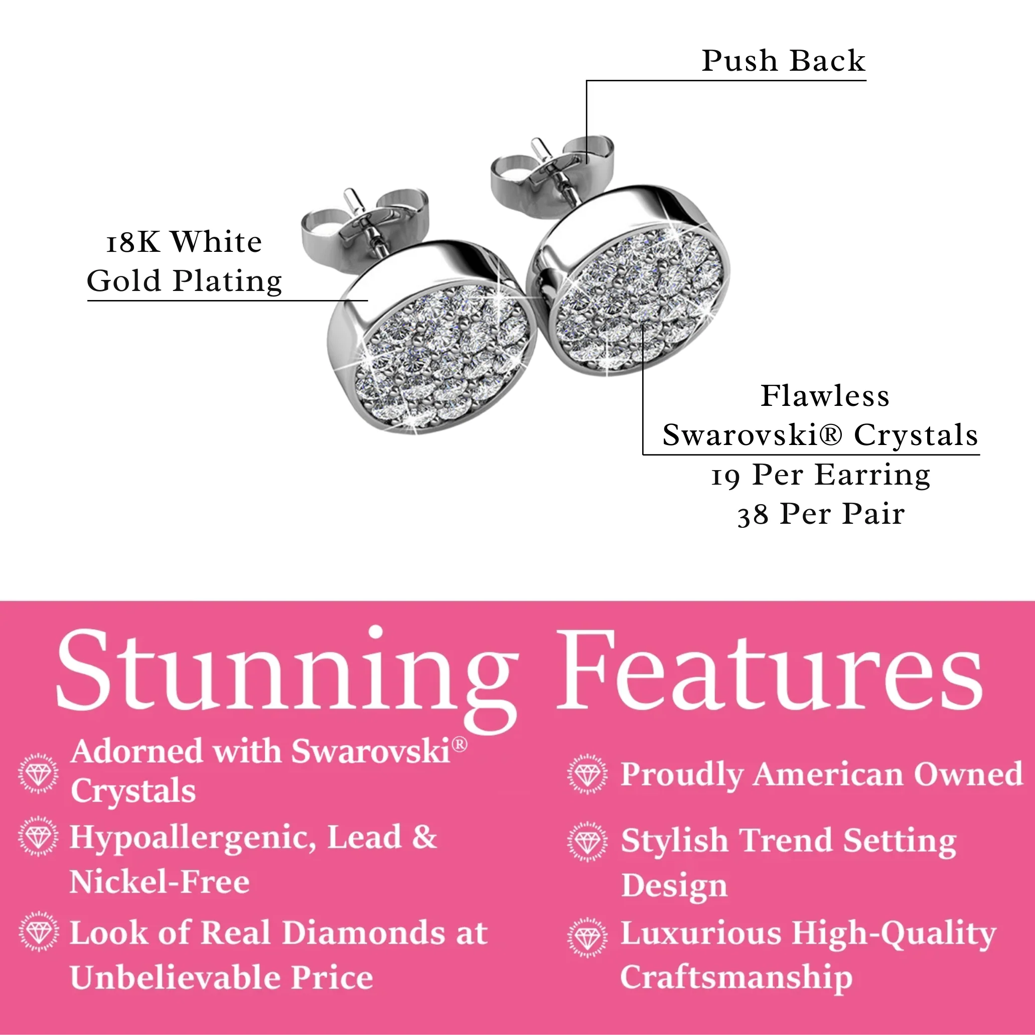 Nelly 18k White Gold Plated Pave Stud Earrings with Swarovski Crystals