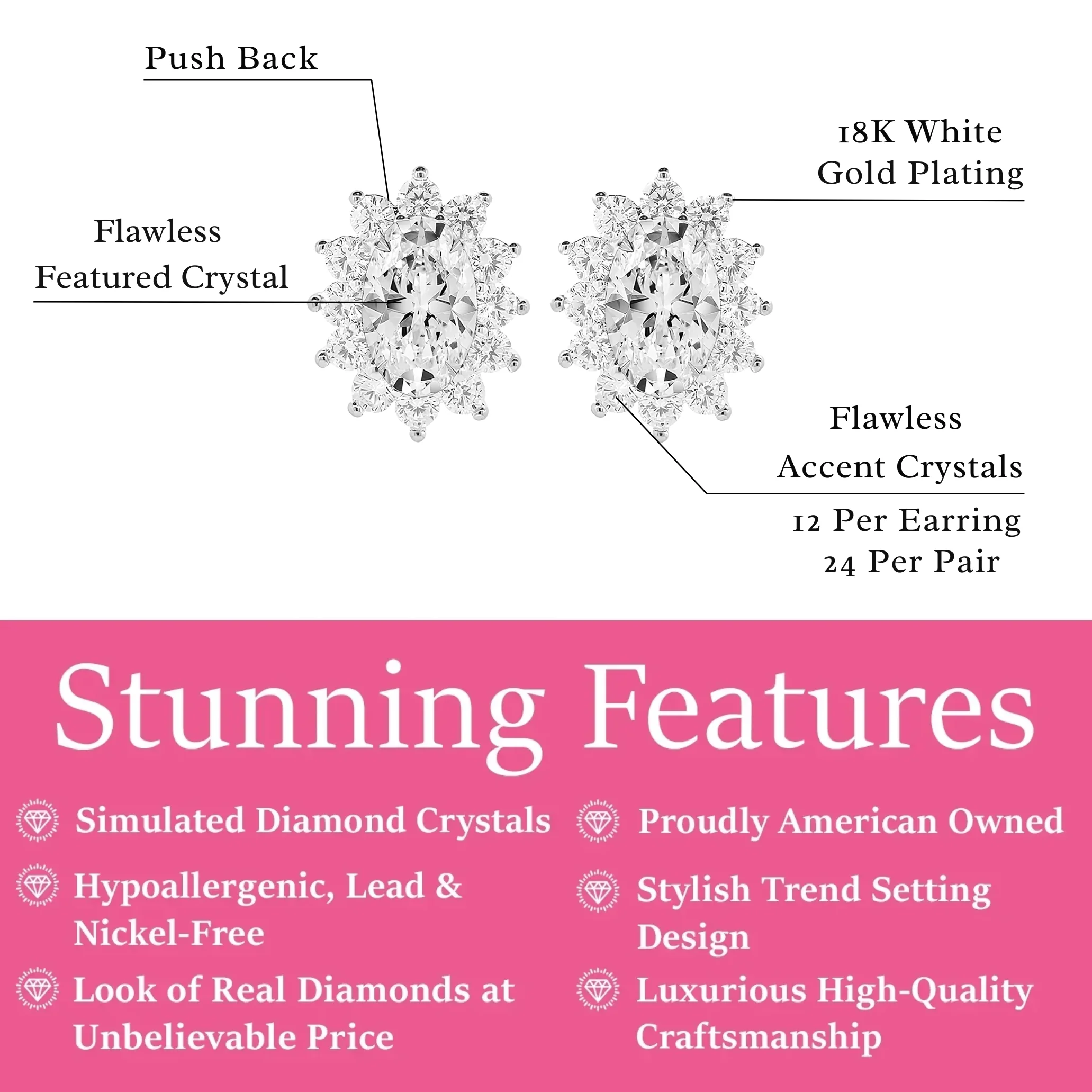 Sage 18k White Gold Plated Stud Earrings with Oval Cut Simulated Diamond Crystals