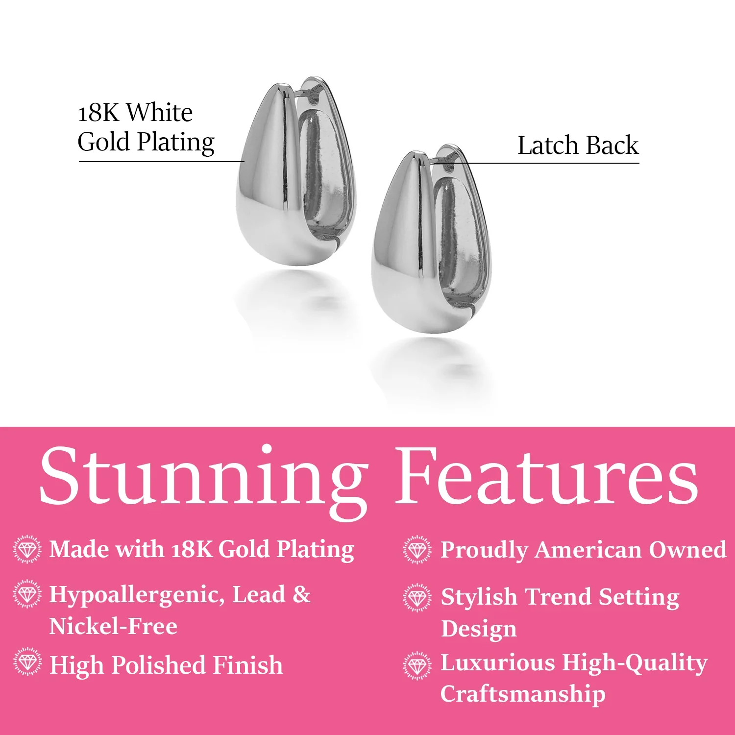 Salma 18k White Gold Plated 15mm Chunky U-Shaped Hoop Earrings