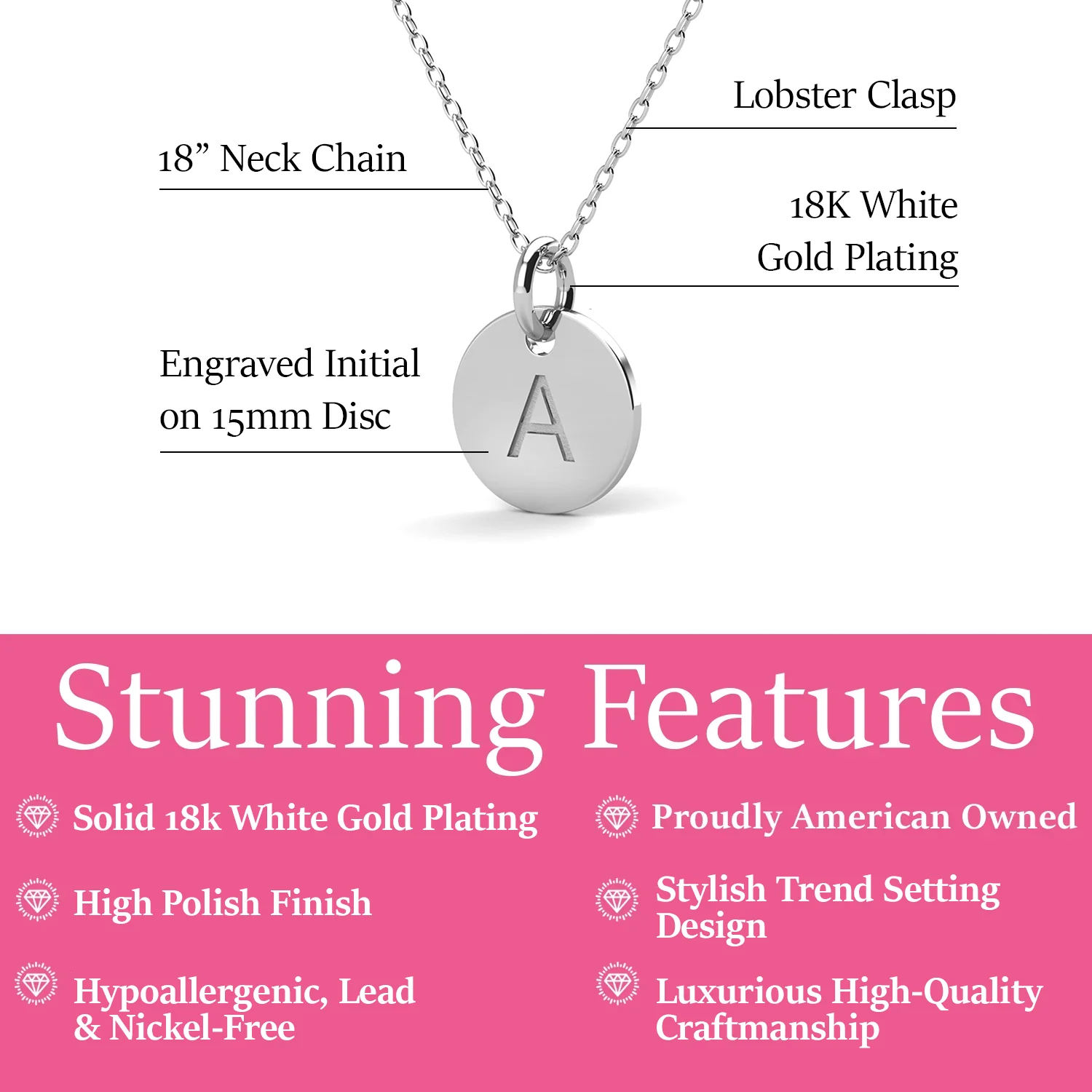 Celebrate your unique charm with the Summer Collection 18k White Gold Plated Initial Letter Pendant Necklace. Featuring a delicate 15mm round disc engraved with your chosen initial from A to Z, this timeless necklace is the perfect blend of simplicity and elegance. The dainty design makes it ideal for layering or wearing solo for a minimalist statement.