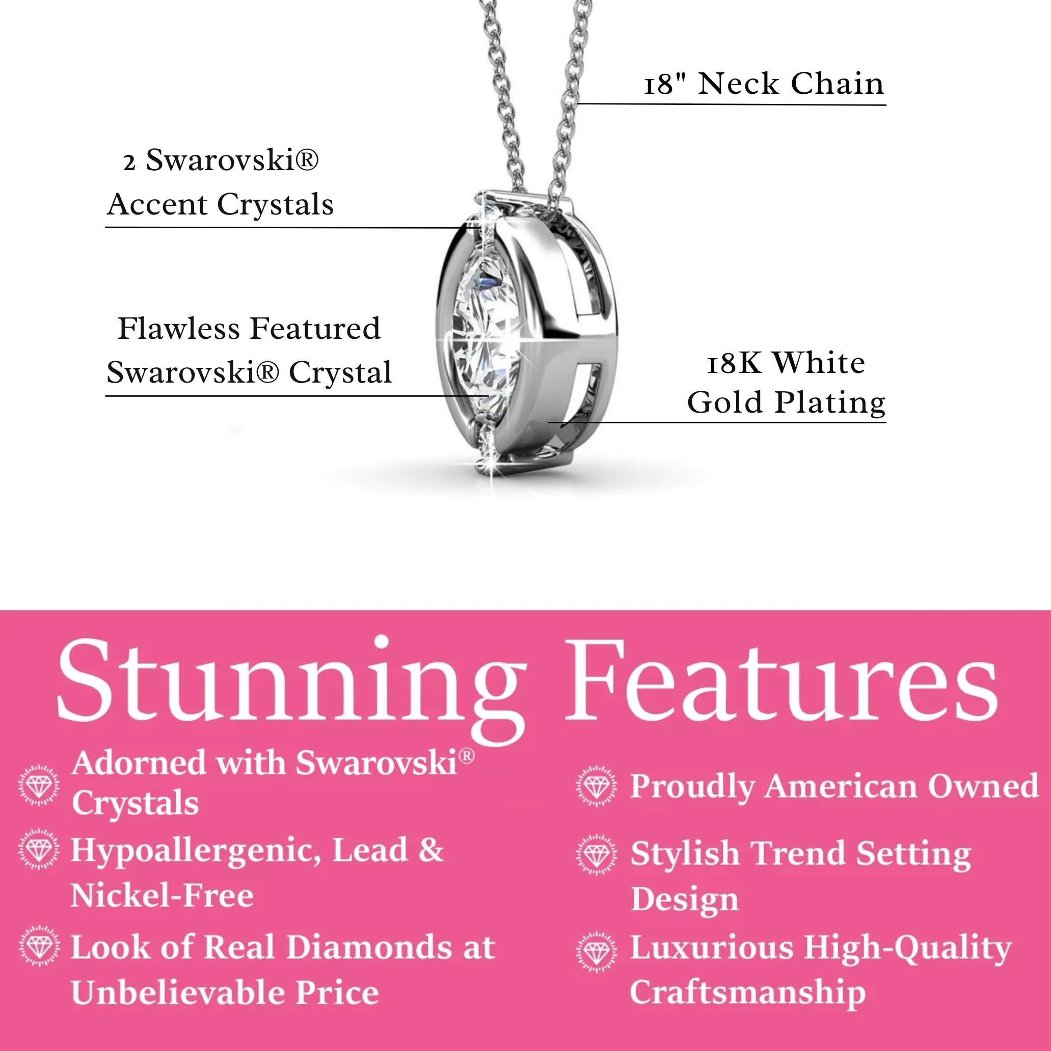The 18k white gold plating exudes sophistication, while the 16" chain (extendable to 18") ensures a perfect fit. Crafted from hypoallergenic, lead, and nickel-free brass, it's gentle on the skin. Complete with a secure lobster clasp and presented in a chic C&C branded gift box, this necklace makes the perfect gift for her, encapsulating elegance in every detail.