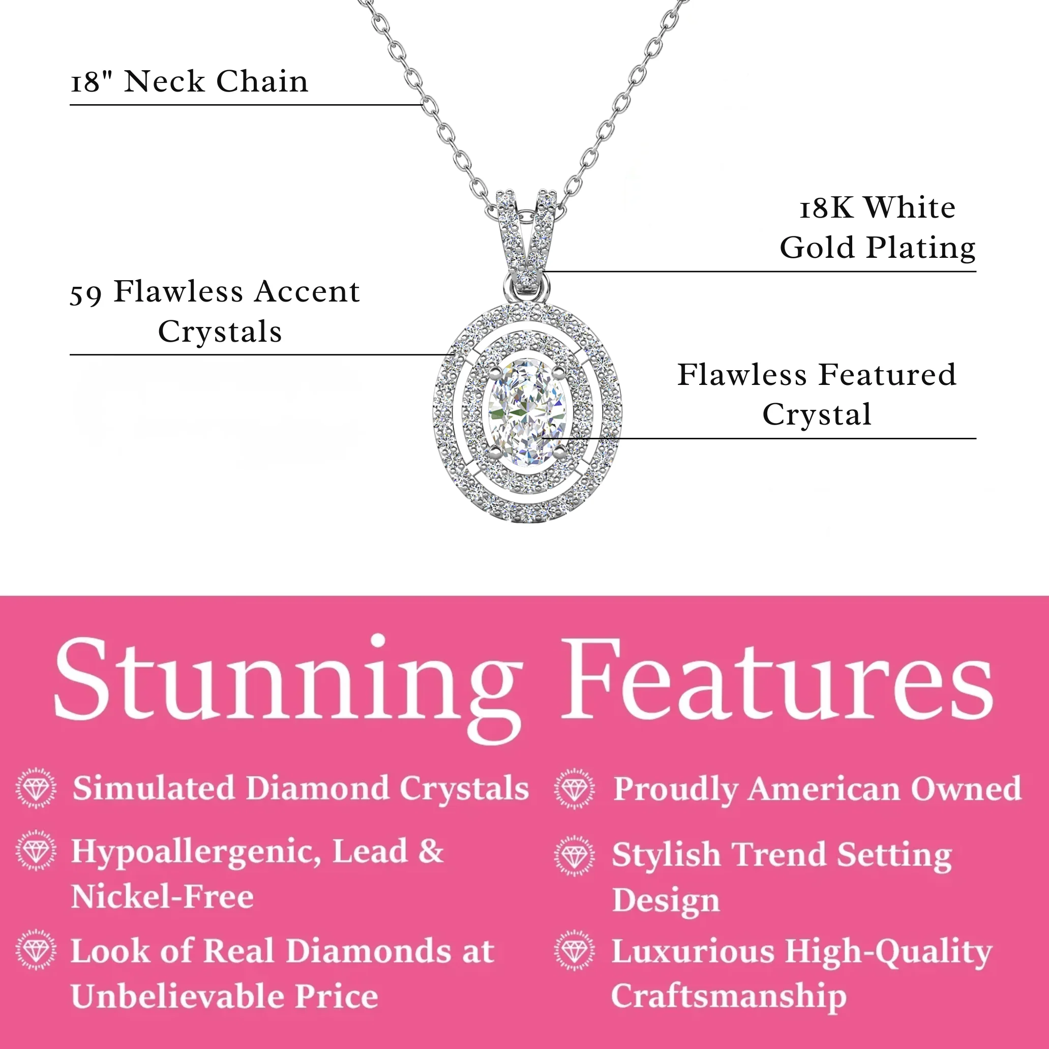 Introducing our Zelda 18k White Gold Plated Crystal Pendant Necklace – a dazzling fusion of elegance and sophistication. Crafted with precision, this necklace boasts an 18k white gold plating, adorned with a 5x7mm Simulated Diamond center stone, surrounded by 59 accent stones, radiating pure femininity.